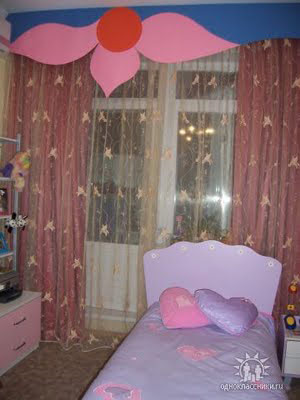 kids room drawings can also be relevant in a room for teenagers. Such an ornament of curtains will help the growing girl feel under the protection of familiar walls.